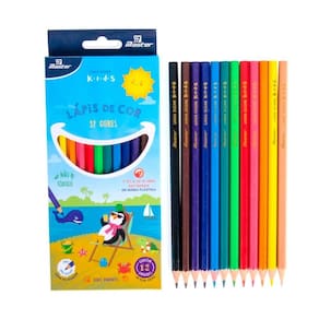 Formato sextavado - maior precisão e não rola sobre a mesa Embalagem com temática do fundo do mar 12 cores vivas e intensas - boa cobertura Minas de 3,3mm - maior resistência e durabilidade Escrita super macia Fácil de apontar Feito em resina plástica - não é de madeira ; Produto não tóxico