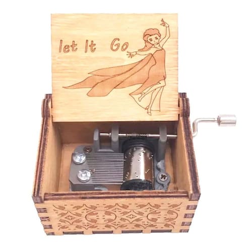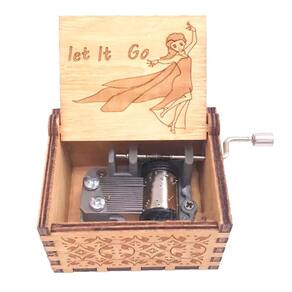 Caixa de música Lets It Go Elsa Hand Crank Wood 6,4 x 5,2 x 4,2 cm