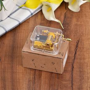 Material: PVC Tamanho: 8x5x3cm Peso: 87 g/1. Design transparente elegante Feita de acrílico de PVC durável, esta caixa de música apresenta uma caixa de música transparente que mostra lindamente o intrincado mecanismo dourado interno, oferecendo apelo estético e fascínio mecânico. 2. Operação clássica de manivela Desfrute de uma experiência musical nostálgica com o design da manivela manual. Não precisa de pilhas, basta girar a alavanca para tocar a icônica melodia de “Castle in the Sky” no seu próprio ritmo. 3. Compacta e leve, medindo 8x5x3cm e pesando apenas 87g, esta mini caixa de música é fácil de transportar e cabe perfeitamente em mesas, prateleiras ou como um charmoso toque de mesa em quartos ou salas de aula. 4. Faça você mesmo e diversão educacional Ideal para crianças em idade pré-escolar e jovens, esta caixa de música serve como um brinquedo criativo de bricolage que apresenta os fundamentos da música mecânica, tornando-a divertida e educativa para a descoberta prática. 5. Uso decorativo multifuncional Perfeito como decoração extravagante para creches, mesas de escritório ou estantes de livros. Seu visual divertido e sofisticado também o torna uma lembrança deliciosa para aniversários, festivais ou ocasiões especiais.