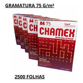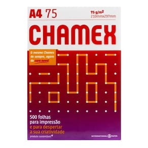 Caixa De Papel Sulfite 75g Chamex A4 Com 2500 Folhas Caixa de Papel sulfite A4 75g Chamex c/2500 folhas Quantidade ideal O consumidor encontrará Chamex A4 75g/m na quantidade ideal para o seu consumo. Mais fácil para transportar A caixa com 5 pacotes é mais fácil de carregar. Ótima qualidade Chamex A4 75g garante ótima performance em todo tipo de atividade, como escrever, criar, reproduzir e imprimir. Não atola na impressora Com superfície resistente, corte perfeito e equilibrada absorção, permite melhor deslizamento do papel na impressora e evita desperdício de tinta. O teste foi realizado em laboratórios da International Paper nos EUA. Contém: - 5 resmas de 500 folhas. Gramatura: - 75g/m. Características: - Papel formato A4 (210mm X 297mm) - Cor: branco.