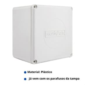 Dimensões 8x8x4 (AxLxP) Caixa de sobrepor de passagem para conectores de cftv. Mantenha os conectores protegidos contra os efeitos do tempo evitando assim a oxidação. Plástico resistente não amarela rápido. Fácil abertura e fechamento. Já vem com os parafusos. Para qualquer dúvida estamos disponíveis através do chat. Fale conosco!