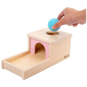Este brinquedo Montessori incentiva o desenvolvimento de habilidades motoras finas em crianças pequenas. Com as três bolas de diferentes materiais, os bebês podem praticar a coordenação mão olho ao segurar as bolas e inseri las nos orifícios designados na bandeja.