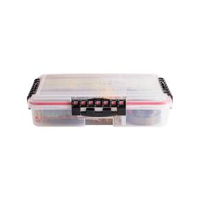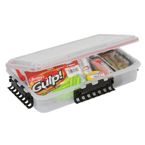 Caixa de pesca plano com três fechos reforçados e anel O'ring em sua tampa para vedar entradas, tornando este estojo a prova d'água. Fabricado em plástico de alta qualidade e resistência para proporcionar proteção aos itens internos. Possui coloração transparente para facilitar a visibilidade dos itens internos.