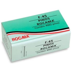 Caixa De Pinos C/Cabeça F-45 - Rocama - Os pinos da linha F são ideais para fixação de forros, rodapés, montagem de móveis, estofados, projetos de marcenaria, instalação de pisos de madeira e tudo mais que sua imaginação permitir Equipamentos necessários: - Pinador compatível com pinos do tipo F. Características Gerais do Produto: : 3 meses Marca: Não Informado