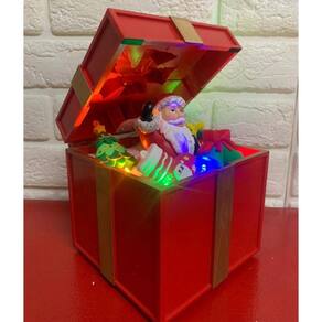 Uma linda caixinha de presente natalino começa a se mover... de repente, ela se abre sozinha e revela um Papai Noel, enquanto luzes brilham e músicas de Natal preenchem o ar!