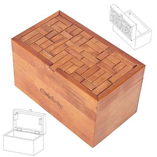 - ¦ Challenge Toy Box: caixa exclusiva de bloqueio e desbloqueio, 49 peças de trilhas de madeira interligadas, você precisa mover 32 peças delas da maneira correta e abrir a caixa secreta. Na primeira vez, talvez seja um pouco difícil, mas quando você encontrar o caminho, será muito fácil.