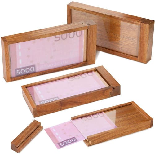 Pacote com 4 caixas de quebra-cabeça de dinheiro Yilloog para presente em dinheiro Caixa de decoração de moedas de madeira Caixa porta-moedas Caixa de quebra-cabeças para adultos