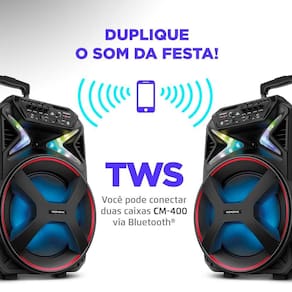 Deixe a festa rolar com esta Caixa de Som Acústica Bluetooth Mondial Connect Light CM400 e tenha o melhor da música. Ela tem 400W RMS de potência, reproduzindo um som de qualidade, entradas auxiliar e USB, bastando plugar o pen drive e escutar seus sons baixados. A Caixa de Som Acústica Bluetooth Mondial Connect Light CM400 também conta com entrada para microfone e guitarra, perfeito para seu trabalho de músico ou os ensaios da banda. Um diferencial dela é a conexão bluetooth, no qual você transfere o arquivo de áudio para o som, sem usar fios. Ainda conta com alça, que facilita o seu transporte. Tudo o que você precisava ter.