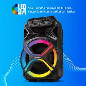 Duplique o som e a luz da festa: A função TWS permite conectar duas caixas iguais sem uso de fio. Assim, música e iluminação ficam sincronizadas para todo mundo dançar no mesmo ritmo.