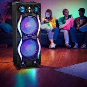 O Woofer Duplo de 12 polegadas com Tweeter garante uma experiência sonora completa, com graves marcantes. Com a função Flash Light, você ainda personaliza as luzes para criar o clima ideal. Torne cada encontro mais vibrante com efeitos visuais e som de qualidade. Tudo pensado para oferecer imersão total.