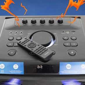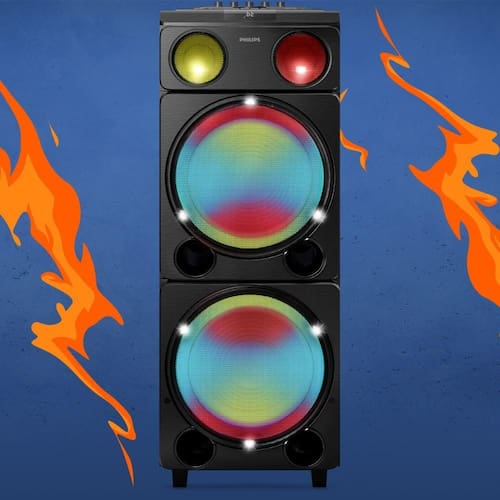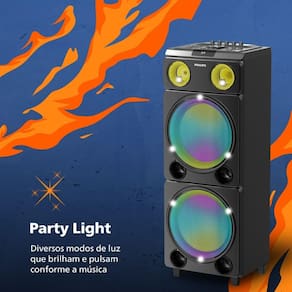 Graves potentes e vozes claras com potência de 24000W, 2 woofers de 12”, um driver de 3” e um tweeter de 4”. Conecte alto-falantes extras sem fio para um som ainda maior.