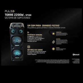 A caixa de som amplificada pulse sp500 - 2200w bleutooth extra potente, desenvolvida com 2.200w de potência em 2 subwoofers de 12 polegadas e 2 tweeters que elevam a qualidade sonora ao máximo, devido a sua função megabass.