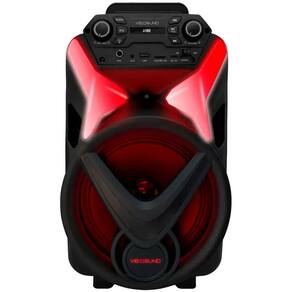 Características: Modelo: VS002 Tipo: Amplificada Potência: RMS: 340W Display de controle: Sim Bluetooth: Sim Entradas: USB, Cartão SD, Auxiliar e Microfone Rádio AM/FM: FM Bateria: Sim Capacidade: 2400mAh Acompanha microfone: Sim Alça para transporte: Sim Homologação Anatel: 08421-24-16756