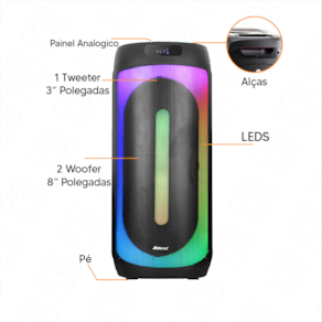São 1600W RMS de pura potência! Essa caixa da Amvox é equipada com 2 woofer de 8” polegadas e um Tweeter de 3’’ que proporciona mais qualidade para suas músicas. Além disso, ela possui bateria interna recarregável bivolt com capacidade de autonomia de 4 horas.