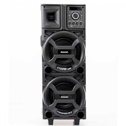 Caixa De Som Amvox Duplo 8 1100W Led Bluetooth USB SD Bivolt Preto ACA 1101