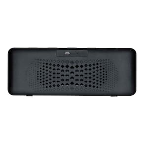 Esta caixa de som portátil sem fio Bluetooth facilita a reprodução de música de alta qualidade ou atender suas ligações telefônicas pelo sistema de viva-voz onde quer que você esteja. Medindo 26,92 cm L x 10,41 cm A x 11,43 cm, está equipada com dois alto-falantes de 7,6 cm e um radiador passivo para fornecer áudio nítido e poderoso com graves aprimorados.