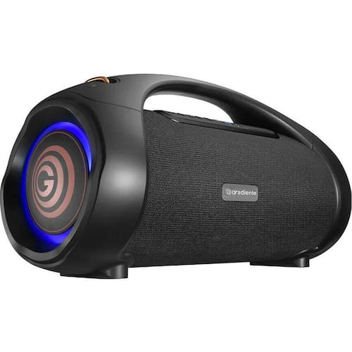 Boombox portátil intense gradiente 100 w de potência rms subwoofer de 5 bluetooth - bateria sw5 Som intenso para suas festas Leve a festa para onde você quiser com o boombox portátil intense. Realce os graves ou agudos das suas músicas favoritas e desfrute da inconfundível qualidade sonora gradiente. Requinte e sofisticação A boombox portátil intense cobre collection é um versátil boombox com qualidade sonora gradiente e efeitos de luzes vibrantes que faz a sua festa em qualquer lugar Tudo isso com um design moderno e elegante Transmissão sem fio via bluetooth Conecte facilmente seu smartphone, tablet ou laptop ao boombox e toque suas músicas favoritas, sem usar nenhum fio. Características do produto Função gradiente connect permite conectar-se a outro boombox do mesmo modelo criando um efeito Estereofônico no ambiente. Bluetooth 5.0 conecte seu smartphone, laptop ou tablet ao boombox para reproduzir suas músicas favoritas. Bateria recarregável proporciona autonomia de bateria de até 4 horas com 100% do volume. Entrada usb reproduz arquivos em formato mp3 através do pendrive. Fácil transporte possui alça embutida manual e acompanha alça transversal para facilitar o transporte. Função karaokê função karaokê para cantar suas músicas favoritas com entrada única para 1 microfone com fio. À prova de respingos - com tecnologia ipx5, o boombox é à prova de respingos. Perfeito para curtir suas músicas na praia ou piscina. Assitente de voz google assistant e controle de voz da siri otimizados. Especificações técnicas Marca: gradiente Modelo: boombox linha cobre collection Cor: preto Potência: 100 w rms Tensão: bivolt Subwoofer: 5 e 2 tweeters 3 Portas e conectores: usb p2 auxiliar Conectividade wireless: bluetooth google assistant e controle de voz da siri otimizados Iluminação: rgb Função eq Bateria interna: sim Função karaokê: sim Painel de controle: teclas de controle e compartilhamento de interface emborrachadas Proteção: à prova de respingos ipx5 Conteúdo da embalagem: boombox gradiente cabo usb cabo auxiliar p2 alça para transporte Dimensões do produto axlxp : 23.5 x 45.5 x 18.0 cm Dimensões da embalagem axlxp : 28.0 x 48.5 x 21.5 cm Peso líquido: 3.4 kg Peso bruto: 4.2 kg Código Anatel: 07858-18-11851 Garantia: 12 meses Homologação Anatel: 014271203986 Ean: 7899637300200