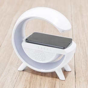 Multifuncionalidade: Combina caixa de som, carregador sem fio e luminária em um único dispositivo.