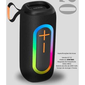 Resistente à áqua IPX6: Perfeita para uso externo, náose preocupe com respingos ou chuvas inesperadas! Com rádio FM: Sintonize suas estacöes favoritas eaproveite a programação Possui luzes LED RGB: Crie a atmosfera ideal com efeitos de luz dinámicos.