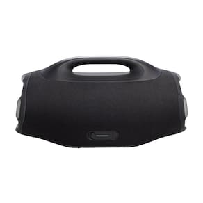 Aumentamos o volume do nosso jeito, em qualquer lugar. O novíssimo JBL Boombox 4 é maior, mais arrojado e melhor do que nunca, com o potente som JBL Pro que permanece alto e claro, com graves profundos e estrondosos. O AI Sound Boost analisa nossa música em tempo real e ajusta o som para nos dar mais potência com menos distorção, mesmo quando aumentamos o volume. Ele vem com dois woofers maiores, dois tweeters e três radiadores passivos, para que cada faixa tenha mais força e soe mais limpa. Quando quisermos ajustar a vibração, basta alternar entre as configurações de reforço de graves profundos ou vibrantes para combinar com nosso humor. Demos ao design clássico do Boombox uma nova atualização, ele é maior, mas mais leve, para que possamos levá-lo aonde quer que a festa vá: à praia, ao quarteirão ou ao quintal. É IP68 à prova d'água e poeira, portanto, o clima nunca é um obstáculo. E, com até 34 horas de reprodução (graças ao Playtime Boost), estamos prontos para longas jornadas. Com o JBL Boombox 4, levamos o clima e a energia para onde quer que vamos.