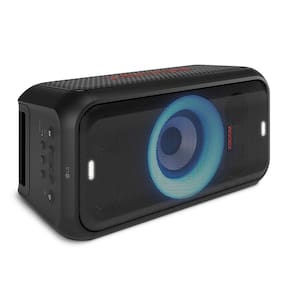 A LG XBOOM XL5T é uma caixa de som completa, trazendo tudo que você precisa para sua festa. O som não para com os 200W RMS de potência. O Woofer gigante traz os graves na experiência completa, e os 2 Tweeters de 2.5 polegadas entregam os médios e agudos perfeitamente. Ela também conta com recursos de iluminação personalizáveis, bateria que dura até 12 horas. A funcionalidade Party Link permite conectar até 10 caixas de som, da linha XL5T, simultaneamente, e o aplicativo próprio possibilita controlar o som, a iluminação, as playlists e a equalização das músicas.