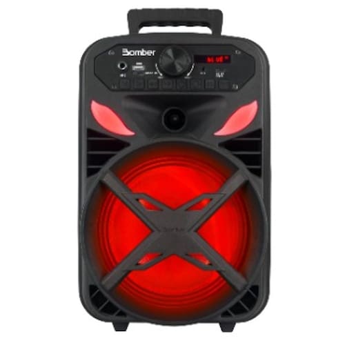 A Bomber PAPÃO 300 é uma caixa super versátil, com excelente desempenho para atender publico em espaços grandes, com seu alto falante de 8 polegadas para a reprodução de frequências médias e graves e um tweeter de alto rendimento para os agudos, conseguem projetar o som de uma maneira espetacular, super potente para animar suas festas ou eventos em espaços abertos com grande facilidade. A entrada de microfone com a função de prioridade diminui automaticamente a musica que esta tocando e faz com que o pronunciamento seja mais claro aos ouvintes. Com ajustes de graves, agudos e echo é possível ajustar o som da caixa ao seu ambiente. Transmita as musicas do seu celular sem fios via Bluetooth, reproduza também via pendrive, cartão de memoria ou do Radio FM integrado. A bateria de íons de Lítio de 2000mAh, oferece até 6 horas continuas de áudio com alta qualidade. A caixa é injetada em plástico ABS de alta resistência e excelente acabamento. A função TWS conecta duas caixas Papão a um celular dobrando sua potência sonora. Os efeitos de luzes rítmicas oferecem um toque especial.