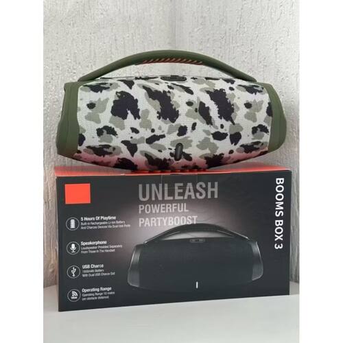Conteúdo da embalagem: • 1x Caixa de Som Booms Box 3 • 1x Cabo de carregamento • 1x Cabo auxiliar P2 • 1x Manual de instruções