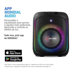 A Party Box PBX 350 da Mondial é uma caixa de som prática e portátil. Conta com luzes de LED multicoloridas, bateria recarregável e design funcional para facilitar o transporte. Oferece diferentes modos de iluminação e conectividade para garantir versatilidade no uso em casa ou em eventos. Características