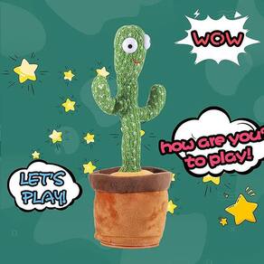 A caixinha de som mais legal do Tik Tok chegou na Fings Store. O Cacto Dançante é um brinquedo super divertido, um ótimo presente para as crianças e até mesmo para os adultos. Ele dança, toca mais de 30 músicas diferentes em Inglês.(Músicas próprias e adequadas para crianças). Ex.: Parabéns para você e músicas do Tiktok. Acende em quanto dança e grava sua voz para repetir a fala. Sistema de carregamento USB - Acompanha carregador. Feito de pelúcia curta e macia de alta qualidade com algodão pp, que é super confortável a mão e antialérgico