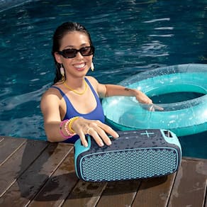 Especificações Potência: 55W RMS Resistência a água: IPX6 Bluetooth: 5.0+EDR, suporte para iOS e Android Distância máxima Bluetooth: 10 metros Resposta de frequência: 60 Hz – 12 kHz Bateria: Lítio 7,4V / 8000 mAh Tensão de carregamento: DC 5V 2A Autonomia bateria: até 20h, conforme utilização* Tempo de carregamento: aproximadamente 4h Entradas: USB-A, P2 (3,5mm) e Micro SD (TF) Modo Power Bank Modo Chamada (hands free) Função TWS (conecte duas caixas ao mesmo tempo) 3 equalizações pré-definidas (Neutro, Grave, Médio) Indicador de carga da bateria