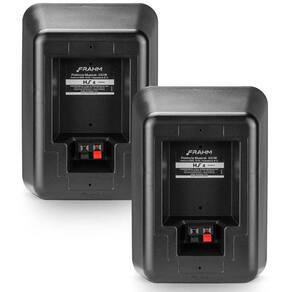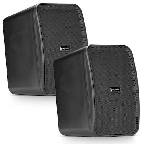 Caixa De Som Hs 4 Outdoor Preta 100W Rms Musical - Frahm As caixas HS 4 Outdoor foram desenvolvidas para ambientes internos e externos com um material super resistente, que protege o equipamento da exposição ao sol, ao vento ou chuva sem danificar ou prejudicar a qualidade e estética da caixa de som. Por isso podem ser instaladas em ambientes comerciais e/ou residenciais. Tem uma acústica equilibrada com ótima resposta em baixas frequências, telar em alumínio, possui um exclusivo suporte bidirecional que proporciona ajustes de ângulos nos eixos horizontal e vertical e local externo para fixação do tráfo (Sem necessidade de abrir o produto para aplicar o tráfo). Possui uma excelente resposta em todas as frequências e potencia para atender os mais variados ambientes, seja ele residencial ou comercial. Especificações Técnicas: - Produto: Caixa de Som - Marca: Frahm - Modelo: HS 4 Outdoor - Potência Musical: 100W - Potência RMS: 50WRMS - Impedância: 8 Ohms - Resposta de Frequência: 60Hz - 20 Hkz - Sensibilidade: 88dB - Medidas Aproximadas do Produto(AxLxC): 21x15x15 cm - Medidas Aproximadas da Embalagem (AxLxC): 23x36x16 cm - Peso Aproximado: 3,5 Kg (PAR) Conteúdo da Embalagem: - 2 Caixas de Som HS 4