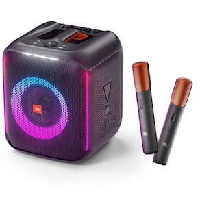 A caixa de som portátil JBL PartyBox Encore oferece dez horas de diversão ininterrupta. Com alça de fácil de usar e o design à prova de respingos, você pode levar a festa aonde for. Mantenha a batida animada com o incrível som JBL Original Pro Sound e graves profundos. Sincronize as luzes estroboscópicas e a iluminação do anel do show de luzes com suas batidas e cante junto usando o microfon digitais sem fio premium da JBL, otimizados para karaokê e com eco, graves e agudos ajustáveis. Com o True Wireless Stereo, você pode até mesmo emparelhar outras caixas de som para usufruir um som impressionante de verdade. Com o aplicativo PartyBox, você sempre pode controlar a música e o show de luzes para criar o clima perfeito.