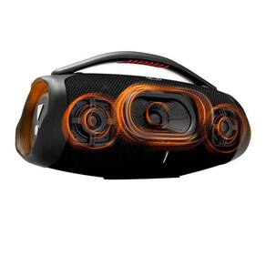 Acabamos de tornar a nossa mais poderosa caixa de som Bluetooth portátil ainda melhor. A silhueta icônica da JBL Boombox 3 tem uma nova e ousada atualização com uma alça de metal resistente e partes em silicone, tampas laterais duplas e tecido exclusivo à prova d água e à prova de poeira. Ela também foi redesenhada por dentro, acrescentando um novo subwoofer que reproduz graves muito mais profundos e o potente JBL Pro Sound, tudo sem qualquer sinal de distorção E 24 horas de reprodução levam você desde o treino matinal até um fim de noite com seus amigos. E para um som praticamente ilimitado, conecte instantaneamente várias caixas de som com o aplicativo JBL Portable.