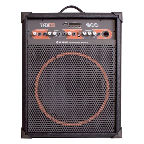 Especificacoes Tecnicas: Modelo: LL Audio TRX12Potencia: 80W RMS maxima sem distorcaoFalante: 12 polegadas + tweeter piezoeletricoEqualizacao: 3 vias (graves, medios, agudos)Entradas: 2 microfones P10, 2 guitarras P10 com bright, keyboard P10, auxiliar RCA estereoConectividade: Bluetooth 2.0, USB, SD Card, radio FMSaida: Line OutBateria: Ate 6 horas de usoAlimentacao: 127/220V (chave seletora)Consumo: 112W RMS a potencia maximaDimensoes: 600 x 430 x 280 mmPeso: 11,8 kgAcessorios: Microfone sem fio, controle remotoCor: Preto