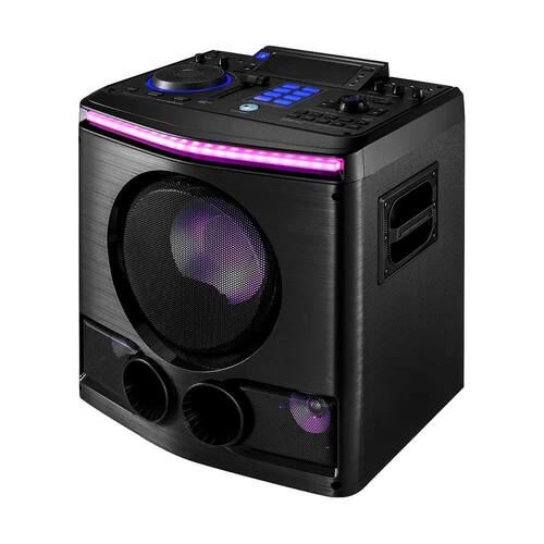 Seu design é minimalista e atrativo! O painel de controle e o display digital estão localizadas na parte superior para proporcionar mais conforto e praticidade na hora de acessar as principais funções, já na parte frontal do mini system você encontra os altos falantes e os LEDs decorativos que criam uma atmosfera festiva com efeitos de luz em várias cores.