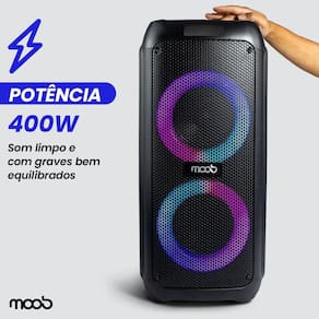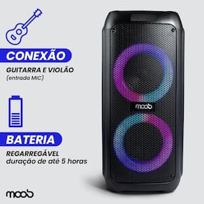 A caixa de som Moob Fusion proporciona uma experiência sonora envolvente e potente, combinando design moderno e tecnologia avançada.