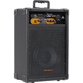 DescriçãoModelo: LITE 400Marca: HayonikA linha de caixas multiuso Lite da Hayonik foi projetada para oferecer versatilidade e praticidade com muita elegância ao usuário. Os modelos da linha Lite contam com entrada USB, slot para cartão de memória SD, entrada para microfone, entrada para instrumentos, entrada auxiliar RCA e ainda conexão Bluetooth para reprodução de áudio a partir de smartphones e tablets, por conexão sem fio. Leve, portátil e muito potente, é ideal para sonorização de pequenos e médios ambientes.CaracterísticasAlto Falantes: 8 + 1 Tweeter PiezoPotência: 60W RMSEntradas: USB/SD/Bluetooth/Rádio FM/1 RCA/1 P10 MIC/1 P10 LINHAEqualização: 2 Vias (Grave e Agudo) Volume Mic / Volume LinhaAlimentação: Bivolt (chave seletora)Dimensões: 489x319x214mmPeso: 7,40 KgInformação adicional: Itens InclusosControle Remoto Caixa Amplificada Lite 400