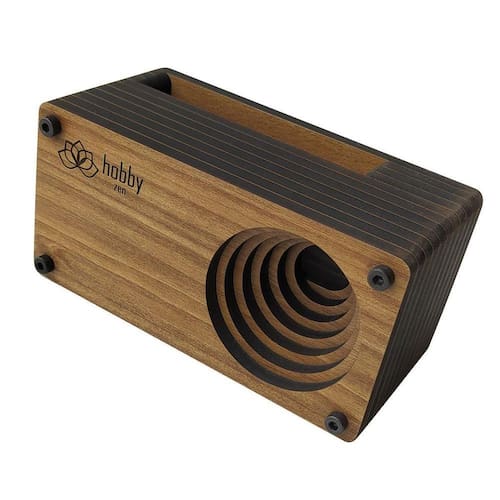 Desenvolvemos produtos para pessoas que adoram um belo design, mas que ao mesmo tempo, não descuidam do ambientalmente correto. Pensando nisso, desenhamos uma caixinha acústica para amplificar o som do seu celular. Sem fio, ele concentra o som do seu aparelho e o direciona para uma conchinha acústica, naturalmente. Fabricado em mdf padrão madeira, com certificado FSC (ecológico), amplifica e melhora o som do celular sem nenhum plugue ou energia elétrica. Funciona com celulares de até 10cm de largura e com a saída de som na parte de baixo (ou próximo). Esse não é um auto falante elétrico. Não espere dele o desempenho de uma caixa de som. Sinta o som vibrando de forma suave e natural. Dimensões: 7 A x 14 L x 7 P (cm) Peso: 500g