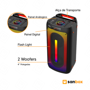 Possuindo Flash Light, contendo diferentes modos de Iluminações trazendo assim mais diversão para sua festa.