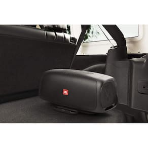 JBL BassPro Go é a primeira caixa de som do seu tipo combinando conveniência, desempenho e portabilidade em um único produto. Quando instalado no veículo tem desempenho igual ao de qualquer subwoofer com caixa pequena do mercado. Facilmente desmontável, ele se torna uma caixa de som com Bluetooth potente de modo que você pode sempre levar a música com você.