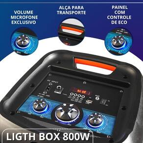 A Caixa de Som Light Box, da Sumay, possui potência de 800W para animar toda a festa, conexão bluetooth, além de uma incrível bateria que não irá lhe deixar na mão.Uma bateria que te proporciona horas de diversão! A Light Box conta com uma incrível bateria recarregável de 7200mah, assim você não precisa mais se preocupar com ficar procurando tomadas, basta apenas deixa-la carregada antes de sair. Sobre a marca: qualidade Sumay! Hoje uma das marcas com maior atuação no mercado de produtos tecnológicos, a Sumay se estabeleceu com mais de 10 anos de trabalho como uma empresa de produtos de qualidade e preços acessíveis.