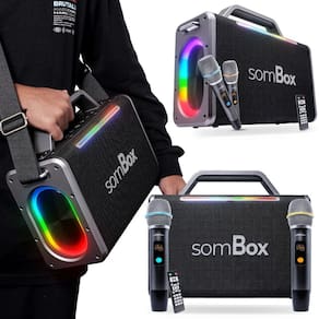 Caixa de Som Portátil SomBox D-XK303 – Potência de 200W RMS, Bluetooth 5.0 e Microfones sem Fio!