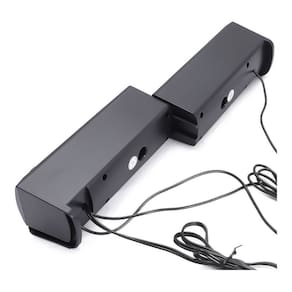 Caixa de som para PC com subwoofer, 12W de potência, conexões USB e Miniplug, e design gamer com luzes LED.Plug