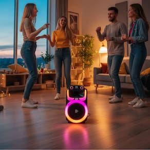 Equipada com iluminação LED multicolorida, a Burst 2 cria o clima certo para cada momento, seja em festas, eventos ou reuniões com amigos. A bateria recarregável garante horas de autonomia, permitindo levar a diversão para onde quiser.