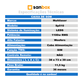 Com sua potência de 1100W RMS, você vai conseguir agitar e animar suas festas, fazendo você sentir cada batida das suas músicas preferidas, deixando qualquer ambiente vibrante e animado.