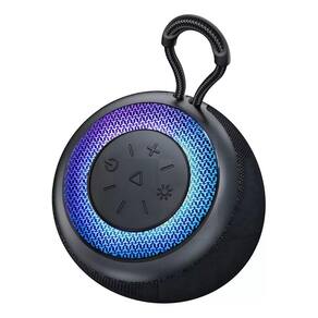 Materiais: caixa de som em abs e tecido, garantindo durabilidade e estilo.
