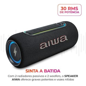 A Caixa de Som Portátil Aiwa AWS-SP-05-LB é perfeita para animar qualquer ambiente com praticidade, estilo e som potente. Com 30W RMS de potência, ela entrega um áudio limpo, definido e com graves reforçados, graças aos 2 woofers de 8 e 2 radiadores passivos laterais que melhoram a propagação sonora.