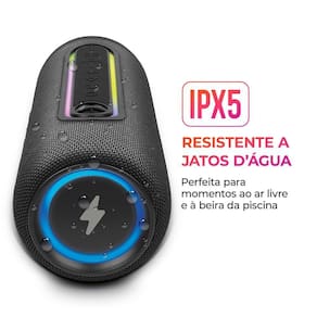 Com bateria interna de até 12 horas e resistência à água IPX5, você pode levar o som da Aiwa para festas, trilhas, praias ou piscinas sem se preocupar. Tudo isso aliado a um design moderno com LEDs multicoloridos que dançam no ritmo da música.