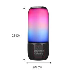 -Potência: 15W RMS -Frequência de resposta: 20 – 20K Hz -Sensibilidade: 89dB -Impedância: 4 Ohms -Driver: 1.35 polegada -Versão Bluetooth: 5.0 -Conexão: BT/AUX/USB/SD/TWS -Compatibilidade com cartão de memória e pen drive de até 64GB; -Capacidade da bateria: 2000 mAh -Duração da bateria: 10 horas com 50% do volume máximo -Tempo de recarga: 4 – 5 horas -Dimensões C x L x A : 9,5 x 9,5 x 22,0 cm -Peso: 0,53 Kg Homologação Anatel: 025931304858 Ean: 7899838871929
