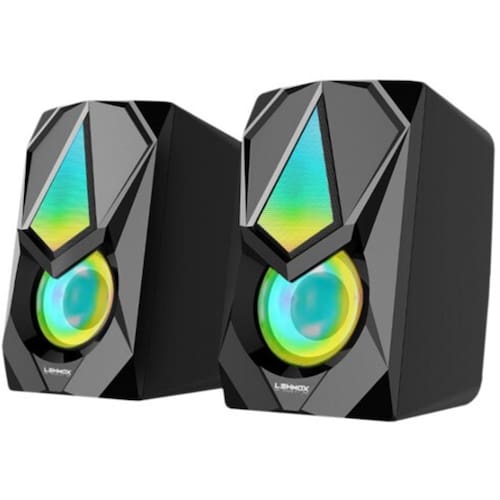 A Caixa de Som Stereo Speaker oferece alto falantes de alta qualidade, com som nítido e preciso, acompanhados da iluminação, que acrescenta mais estilo ao seu setup. A caixa de som gamer é pensada para você ter o som perfeito durante o gameplay de seus jogos online favoritos. Com design leve e, ao mesmo tempo, repleto de recursos capazes de proporcionar praticidade e imersão mnas gameplays. 2.0 alto-falantes estéreo para computador, jogos, músicas e filmes, uma variedade de diversão. Os alto-falantes são pequienos e altos, não ocupam muito espaço na área de trabalho. Possui Luzes RGB dinâmico. O design do ângulo de elevação aproxima a direção da propagação do som da posição do ouvido. Prático e fácil de operar. Para proteger sua audição e prolongar a vida útil do produto, não é recomendável deixar o volume alto por um longo período de tempo. Crianças menores de três anos não podem usar o alto-falante.